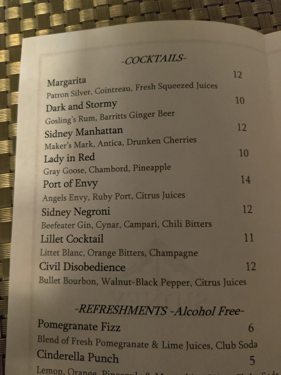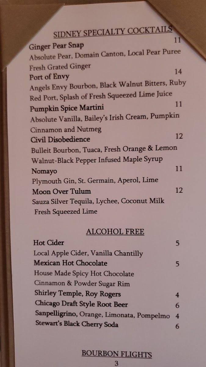 Patrons appreciate the exceptional service and the delightful blend of flavors found in seasonal drinks like rum punch and raspberry rose. While some note the need for quicker service, the overall dining experience at Sidney Tavern is cherished, making it a worthy visit for anyone seeking a memorable meal.